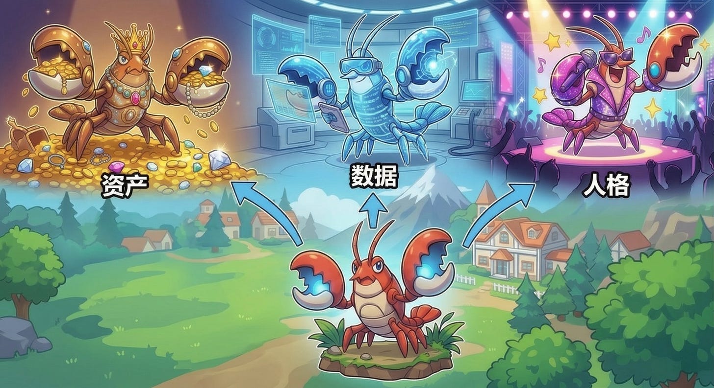 数据:小龙虾的日常喂养饲料:提示词、对话记录、个人偏好、模型权重等等,以及过度授权所掌握的大量隐私信息。
